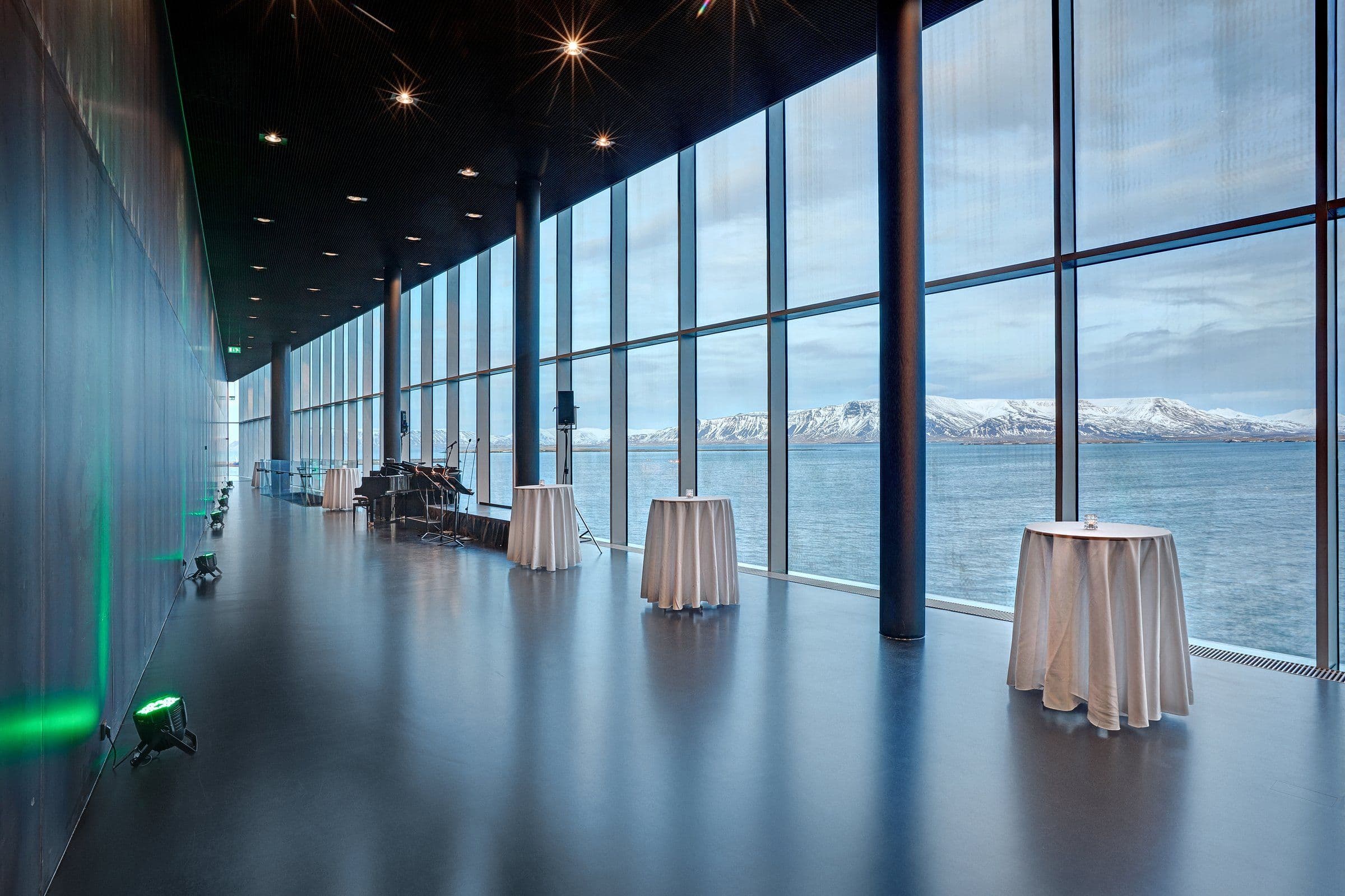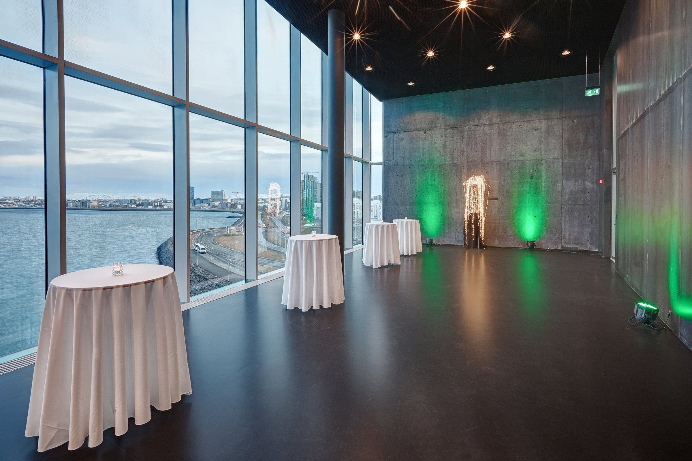 Fimmund is on the fifth floor on the eastern side of Harpa next to Eldborg with a spectacular view of the fjord and surrounding mountains. The space is triangular, with large windows and a high ceiling, and therefore pleasantly different from what usually happens with spaces like this.
