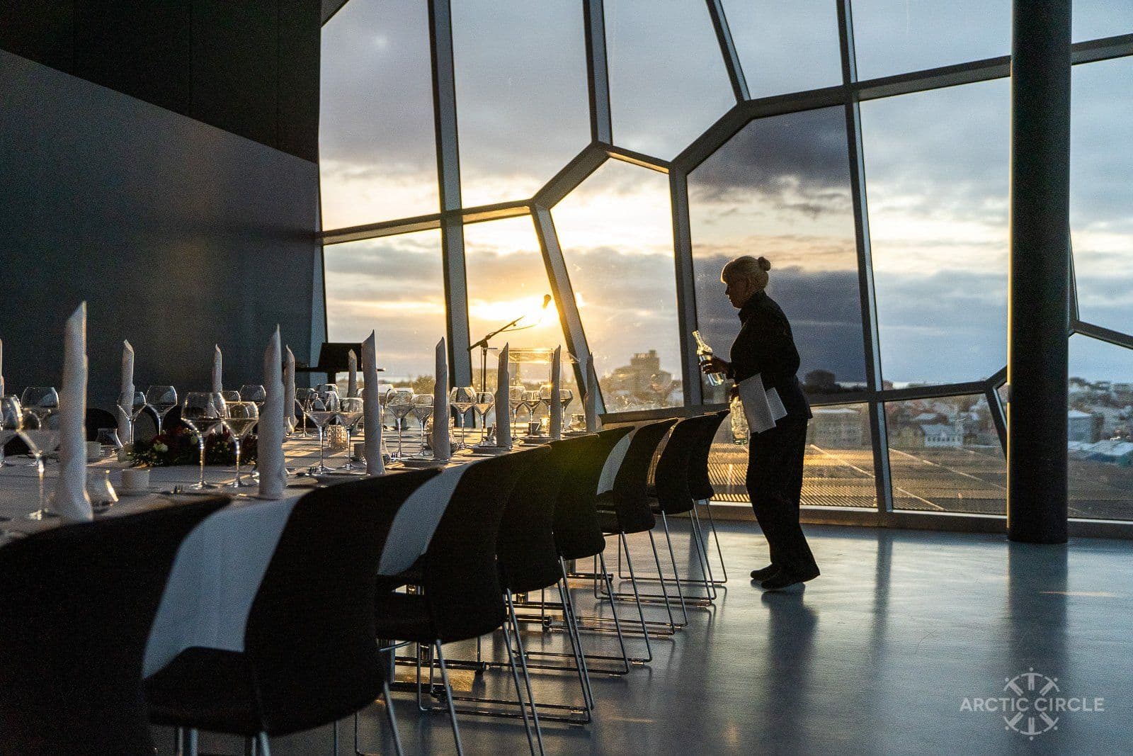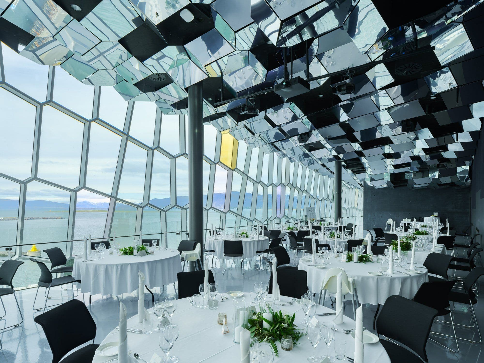 Háaloft is an elegant hall on the 8th floor of Harpa, on the north side. It offers a magnificent view of the western part of Reykjavik city, the harbour, the bay and the mountain range. The hall is suitable for all kinds of smaller events.