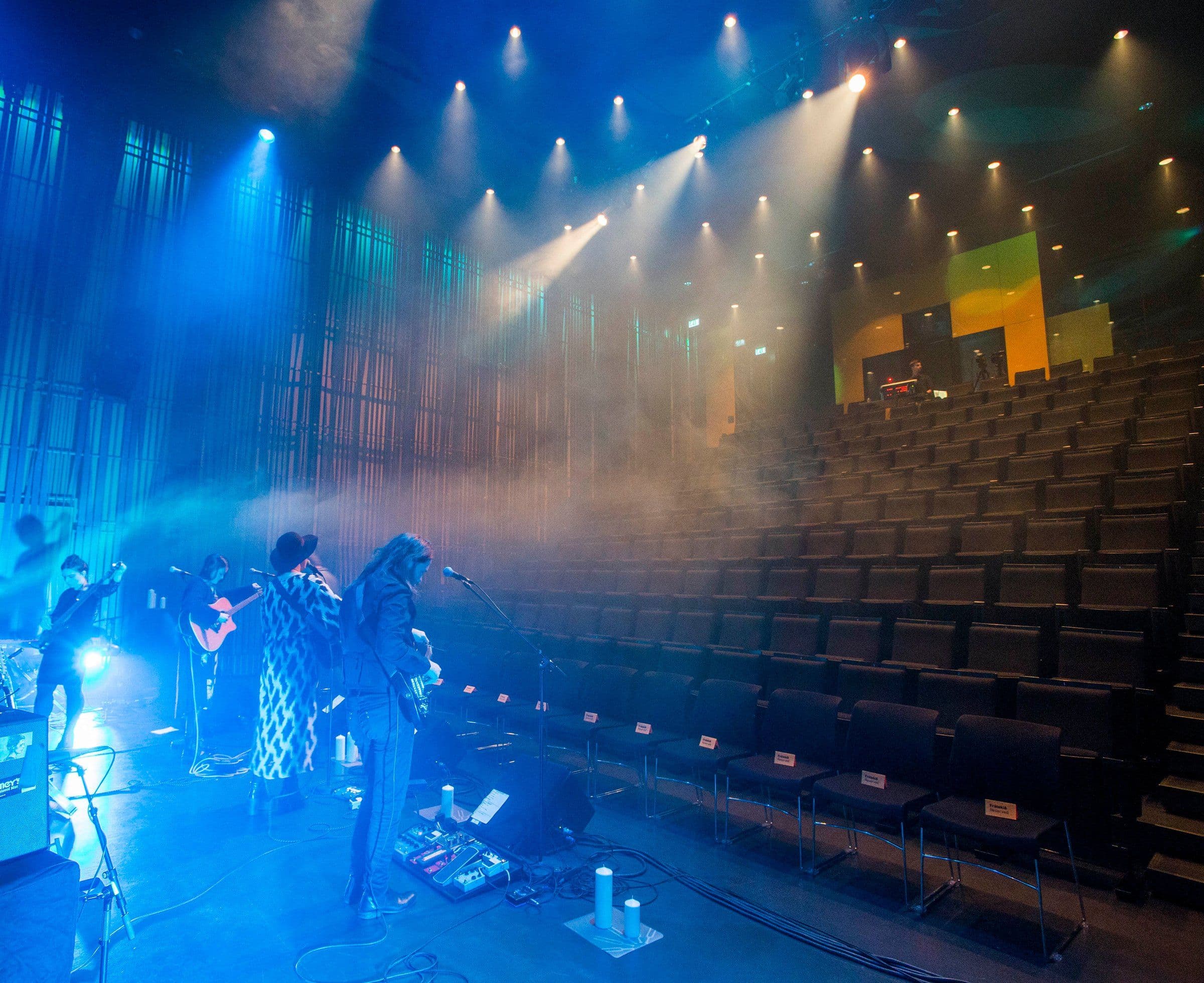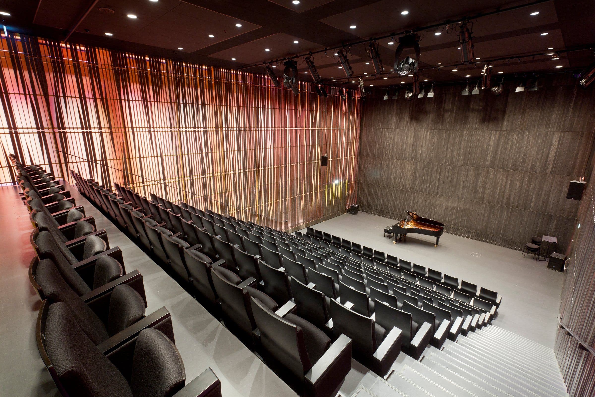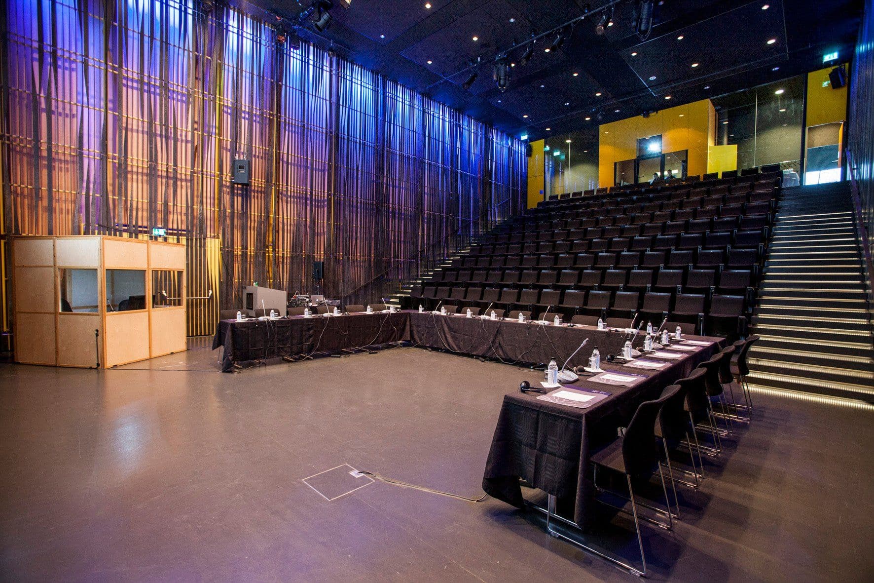 The reverberation time in the hall can be altered, making Kaldalón adaptable for various events. The seating in Kaldalón is stationary, on a fixed gradient down to the stage area. The stage itself is moveable and the floor can also be used as a platform for musicians or lecturers.