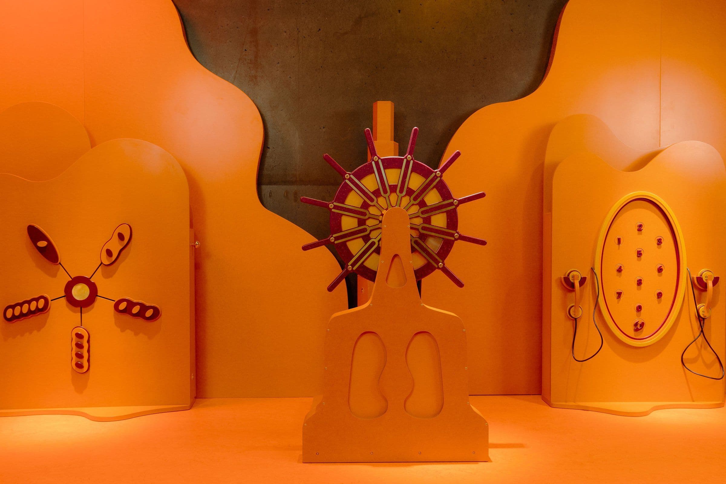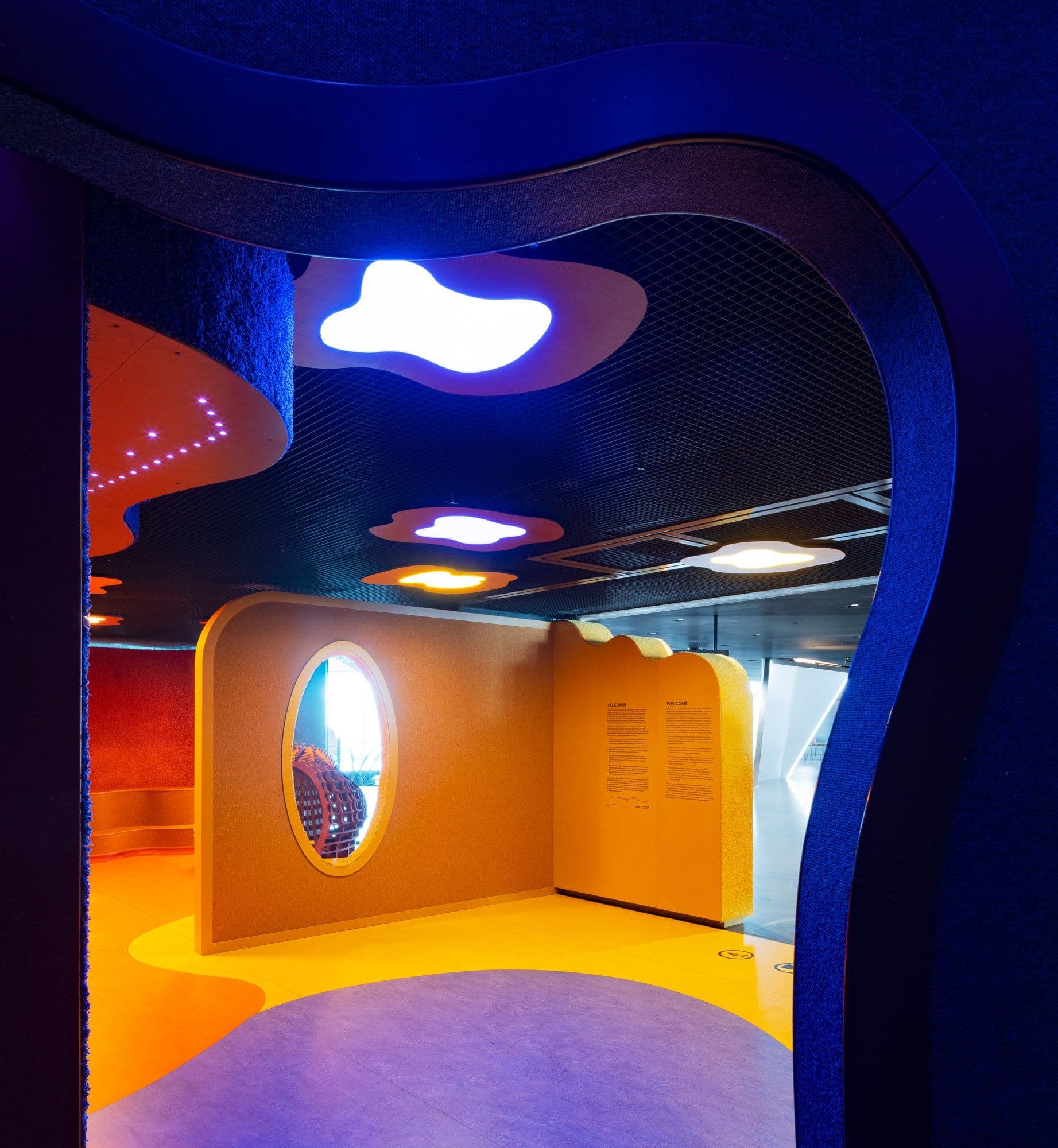 Hljóðhimnar is an intriguing, colourful and warm setting for a wonderland of sound and tones, where all designs aim to educate through play. The organisation of the space is inspired by the ear and the anatomical shapes found in listening, such as the cochlea.