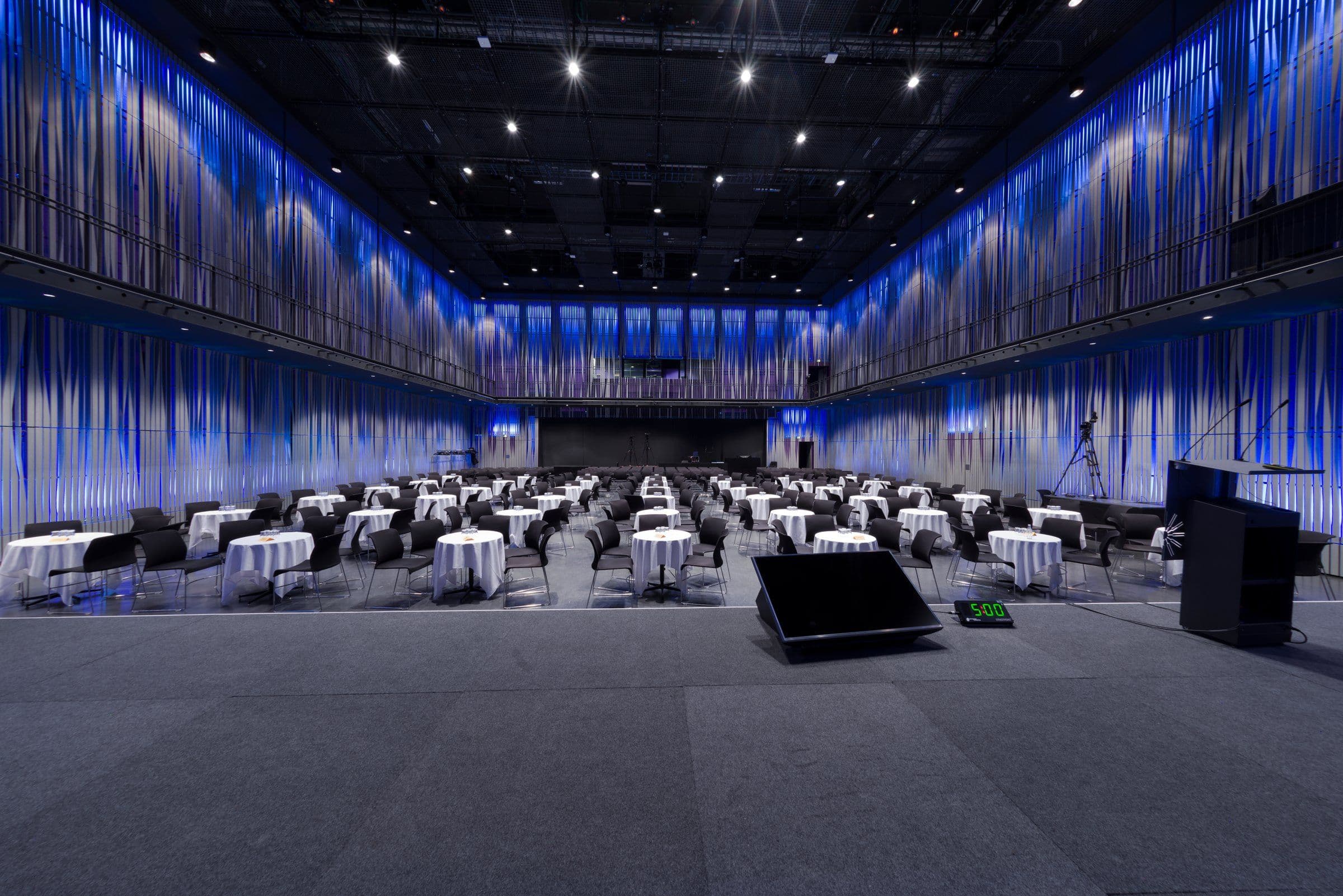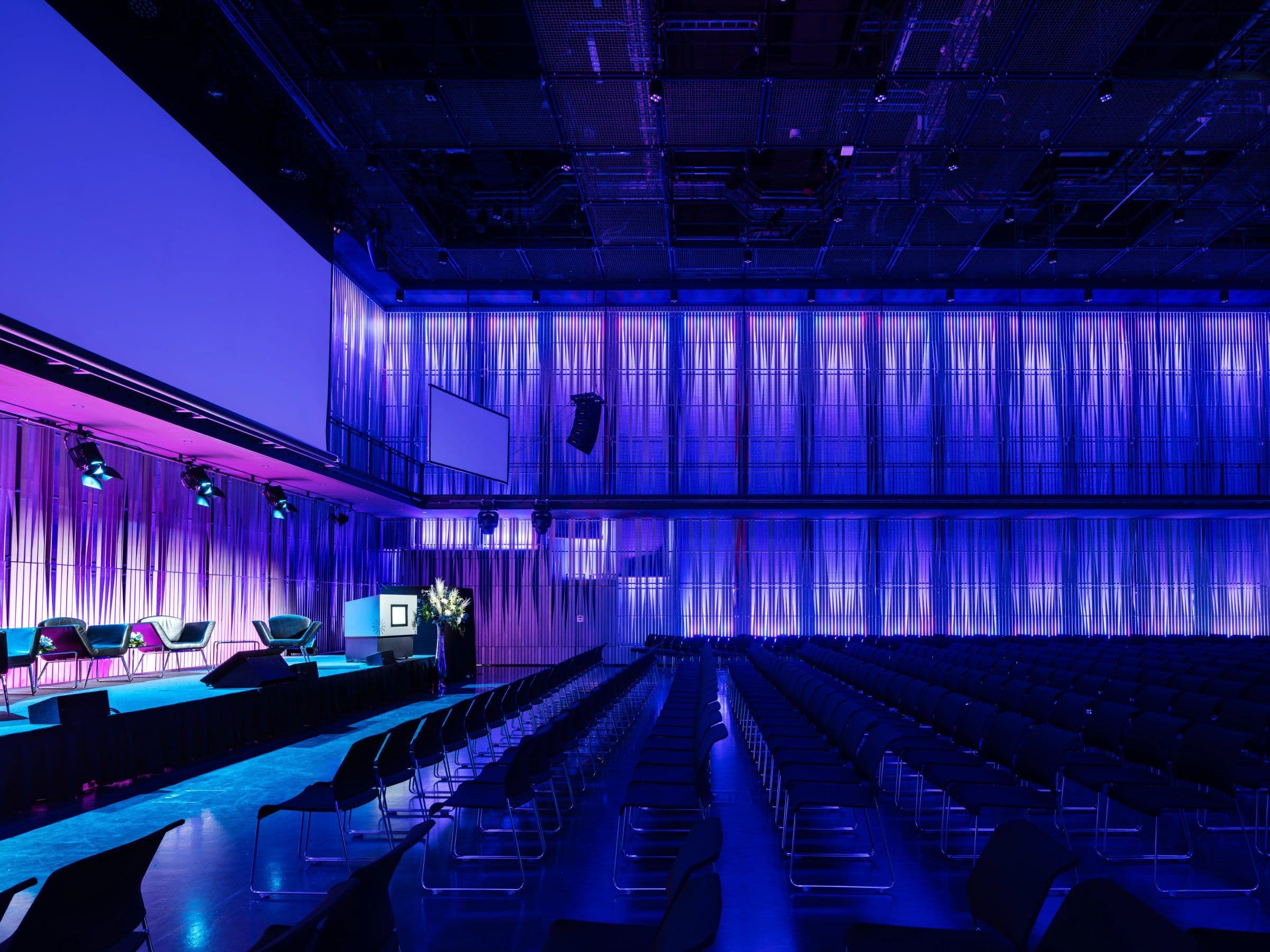 Sviðið er færanlegt sem gefur margskonar möguleika og hægt að raða sætum og borðum að vild. Svalir í salnum ná allan hringinn og geta verið nýttar í tengslum við viðburði.