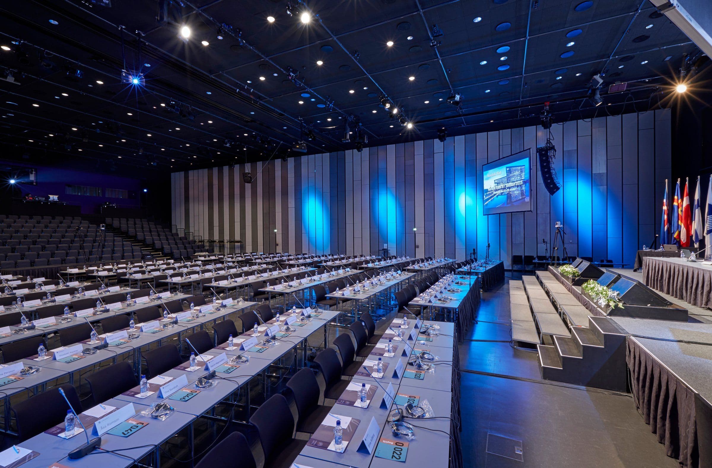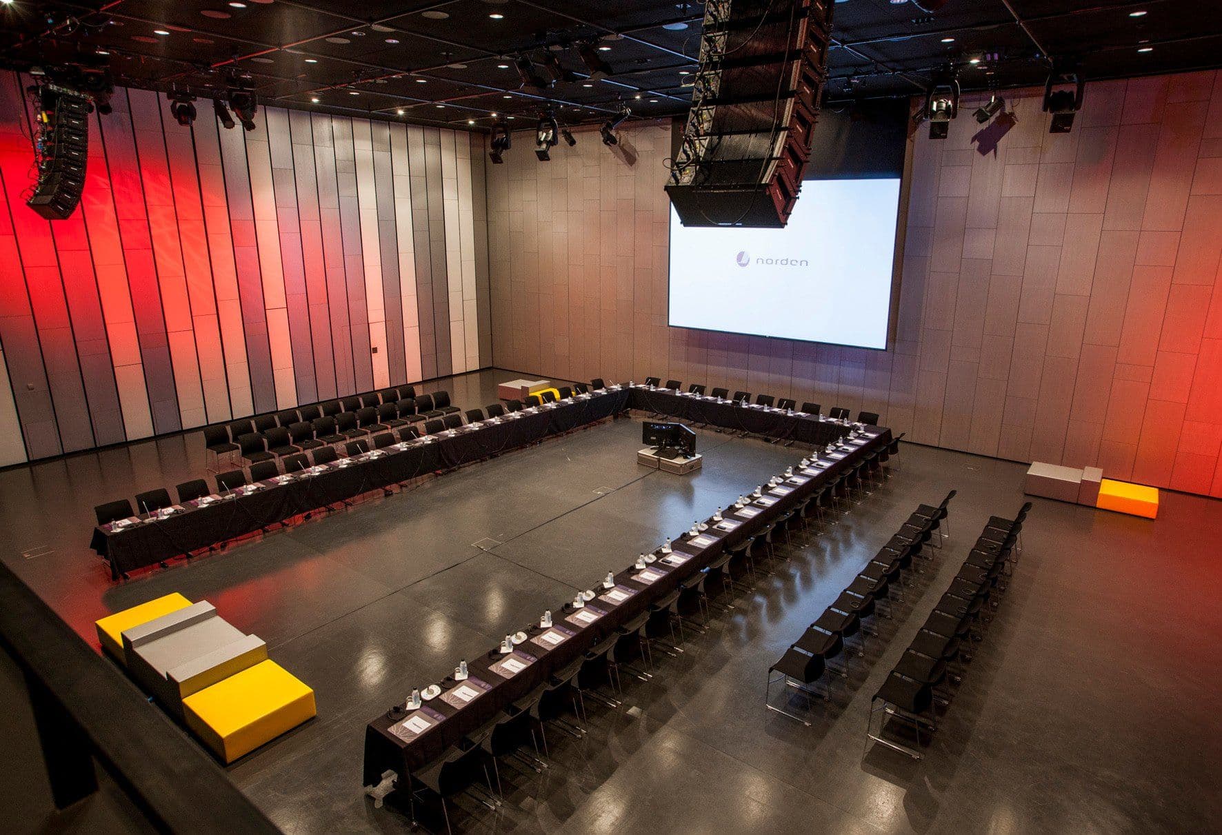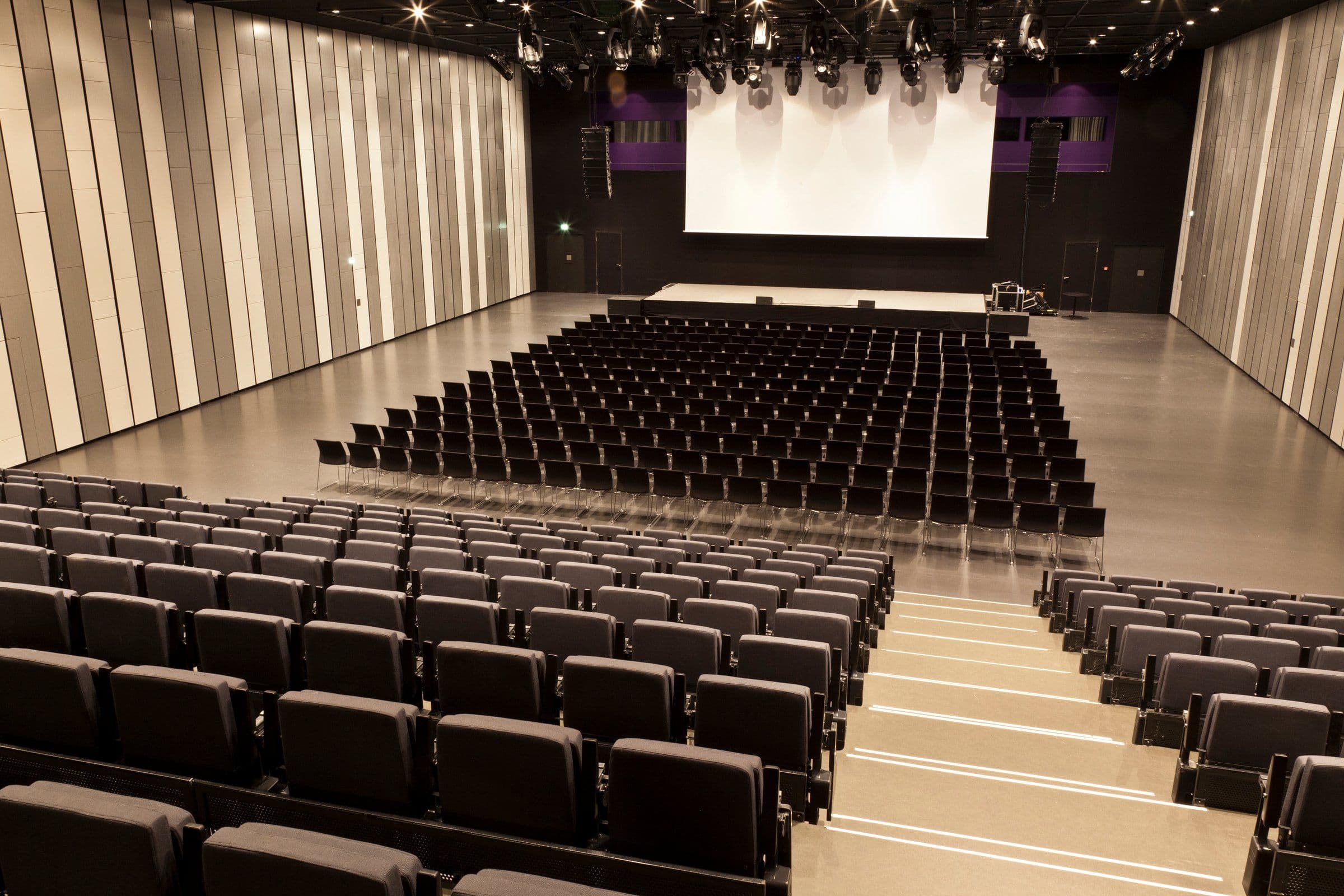 Sviðið getur verið í mismunandi stærðum og er færanlegt. Sætin eru laus og gólfið flatt, en við enda salarins er útdraganleg stúka.